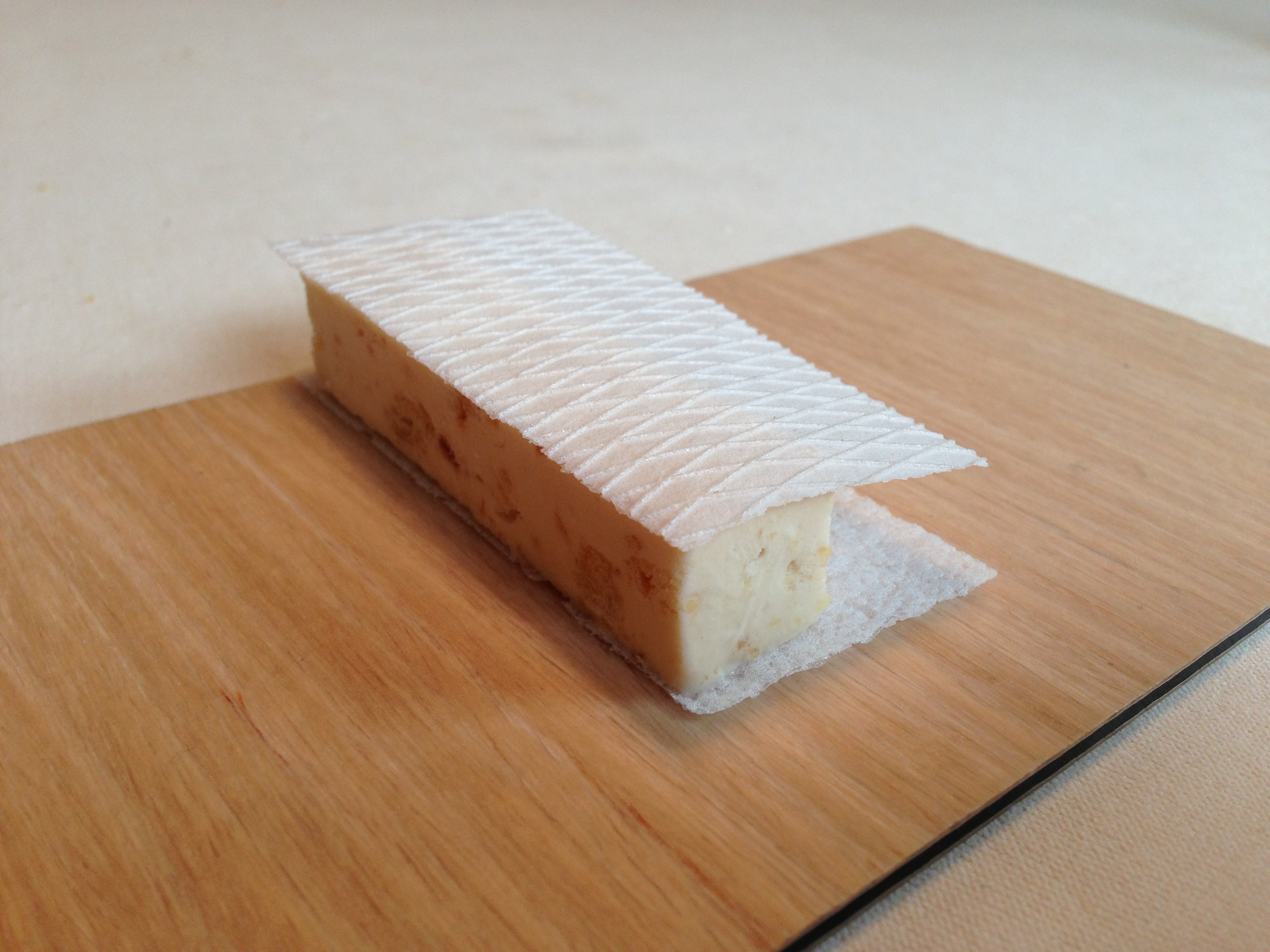 Frozen nougat! There were ice cream and pieces of almond, but it tasted exactly like (really cold) nougat… with the texture of ice cream.