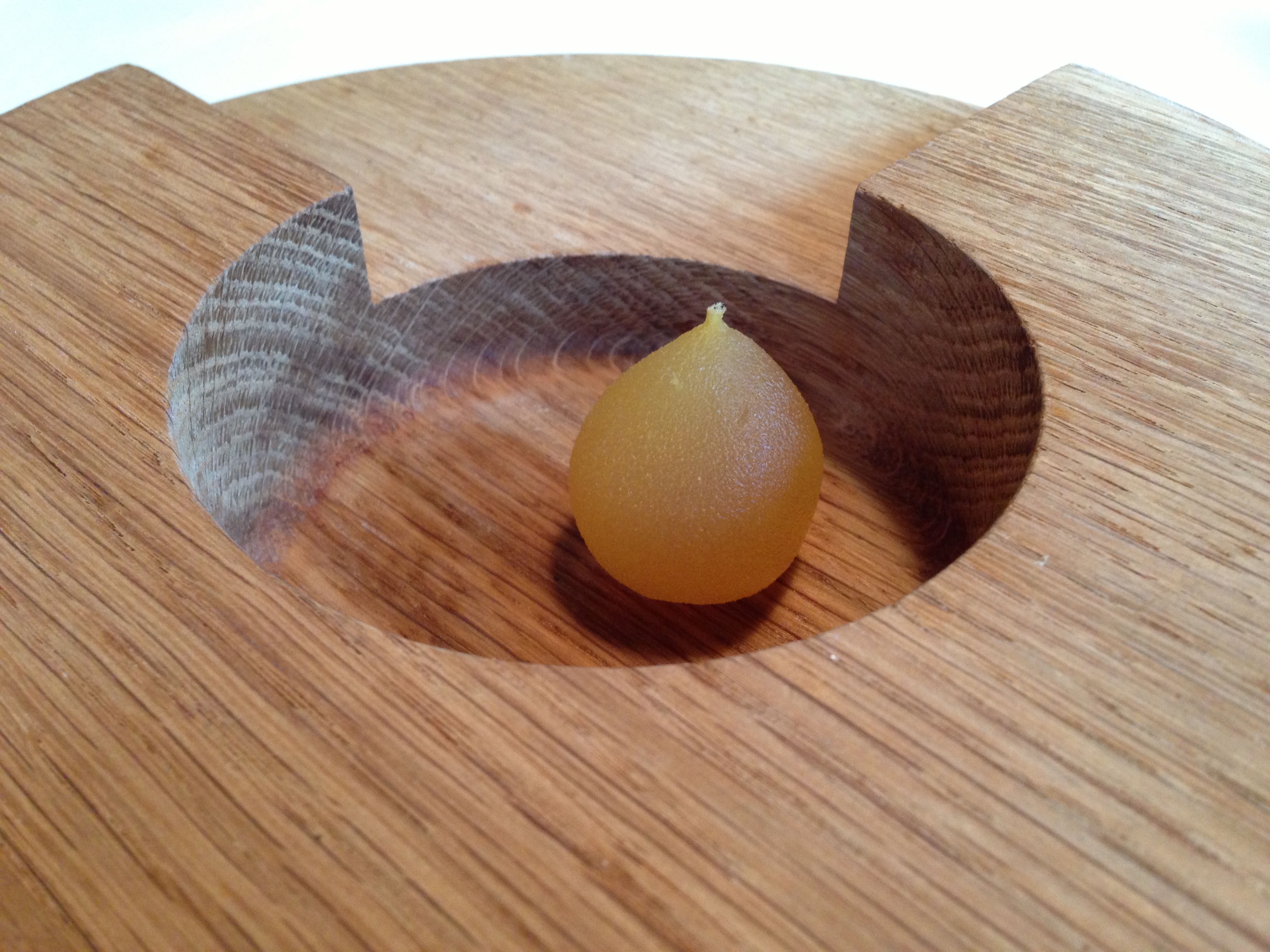 Fried veal tendon with honey mead, egg yolk, and dipping ash.