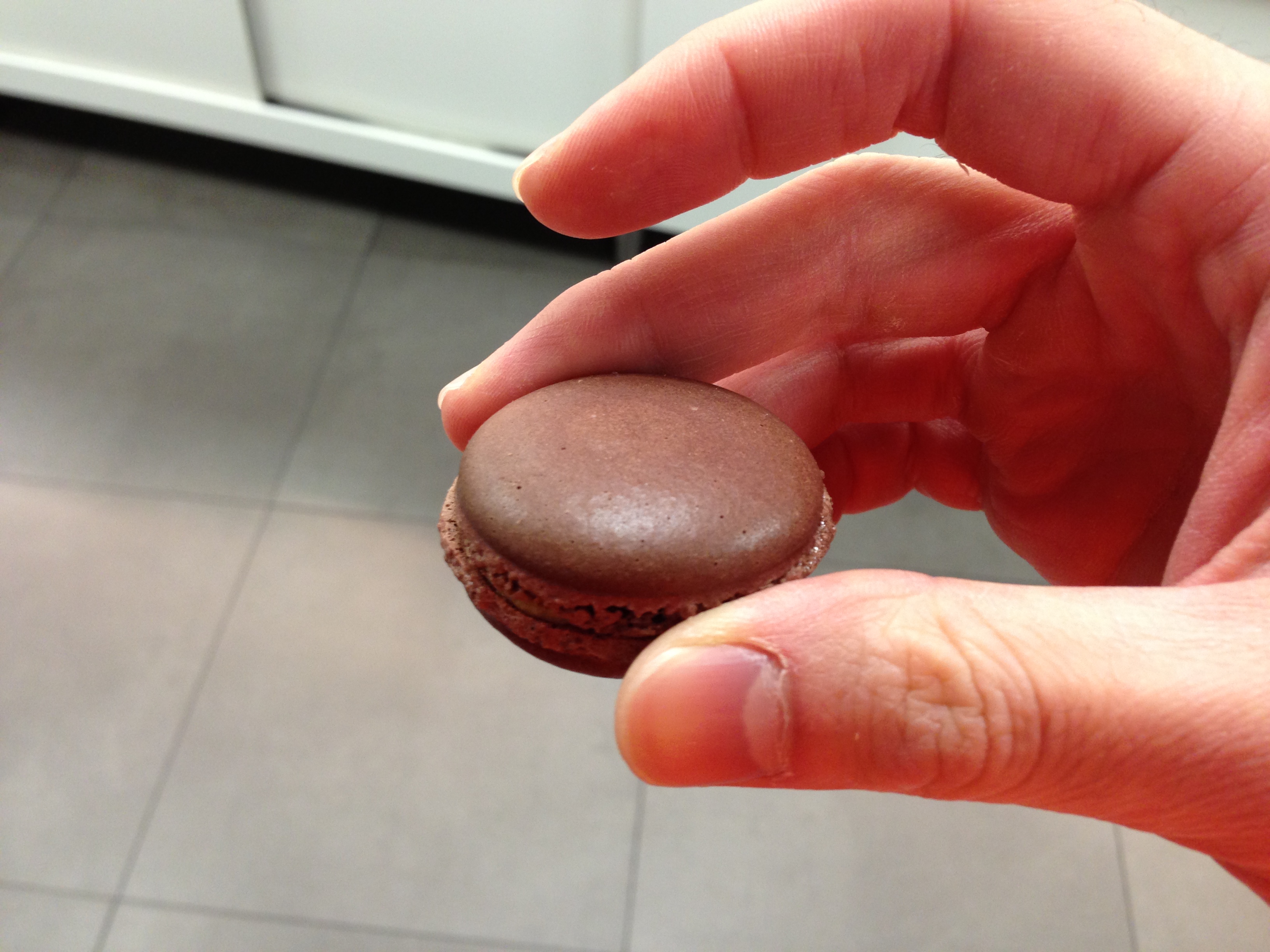 They give me this chocolate macaron while in the kitchen. I’m guessing they do a different snack or flavor every day or week.