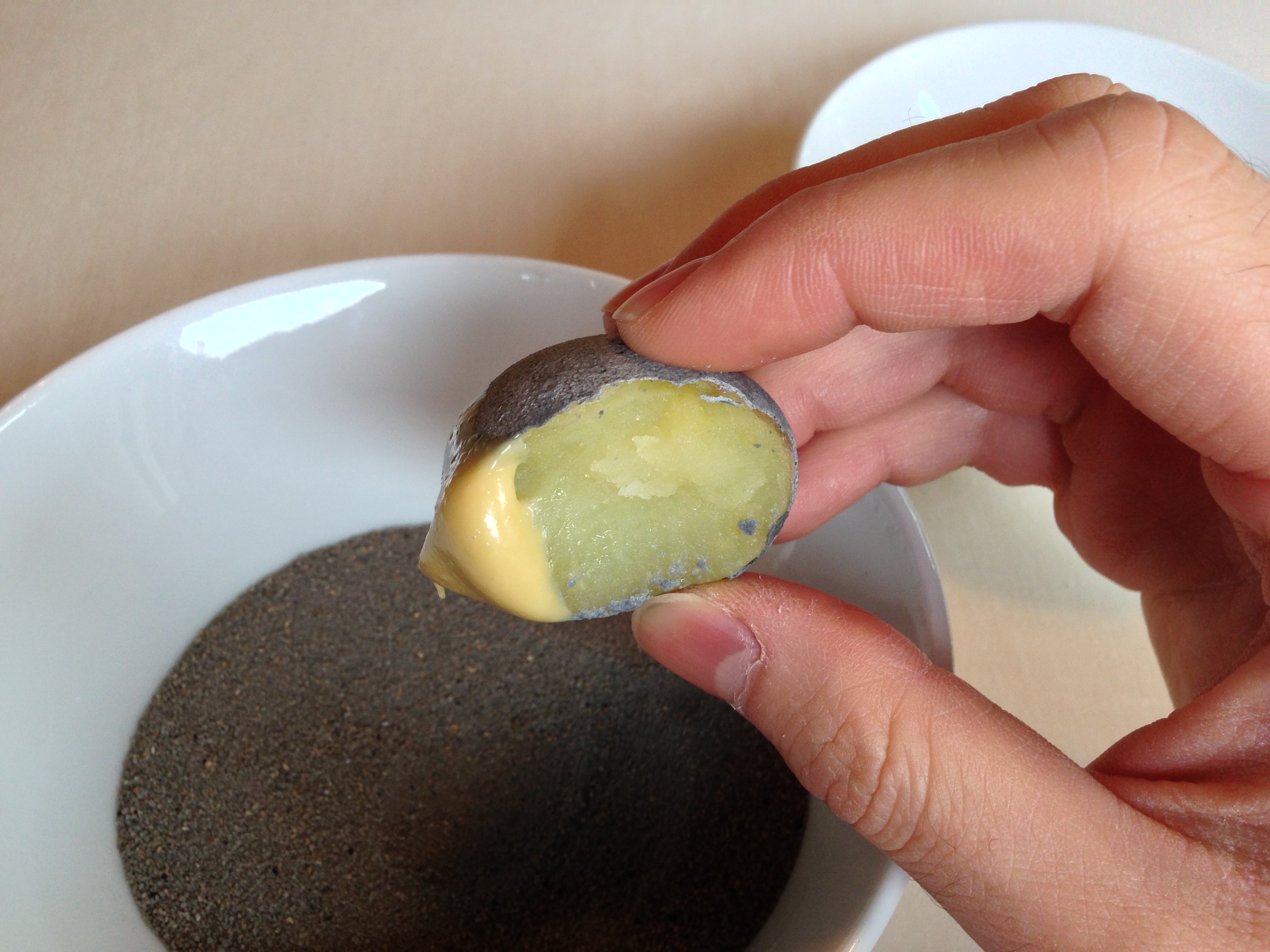 Biting into the edible “stone” revealed the potato underneath the kaolin.