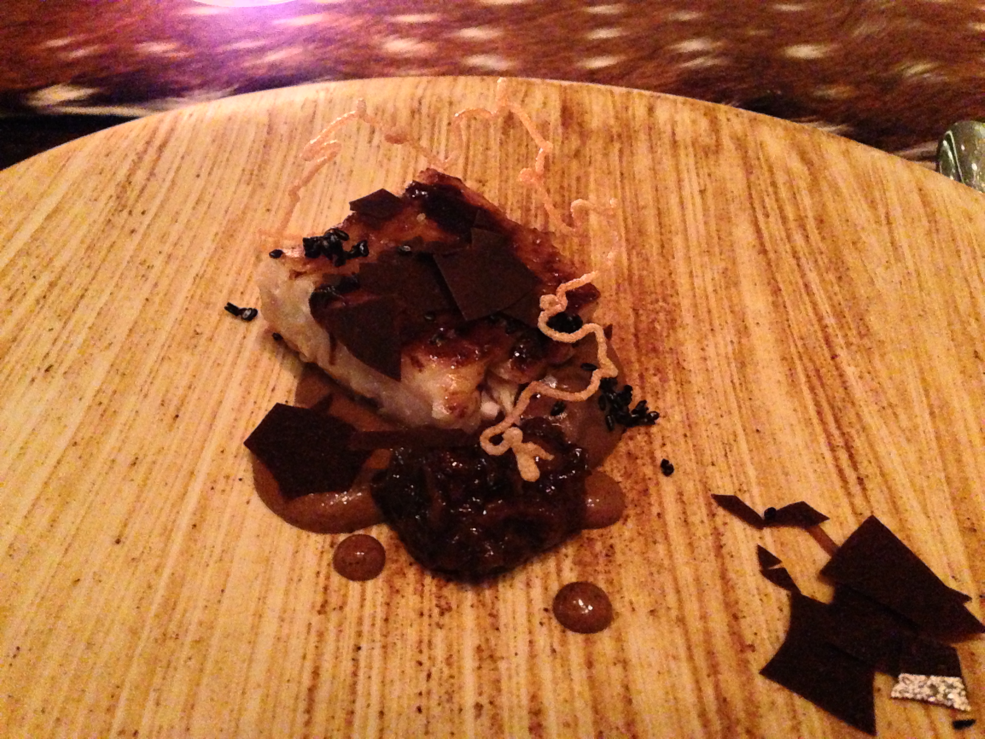 This was good and felt like a very sweet version of Thomas Keller’s salmon cornets hahaha. The one issue I had with this petit four was that the sweet potato wrapper stuck to my teeth. It was kind of uncomfortable eating this due to the stickiness. It also made me concerned for my dental hygiene…