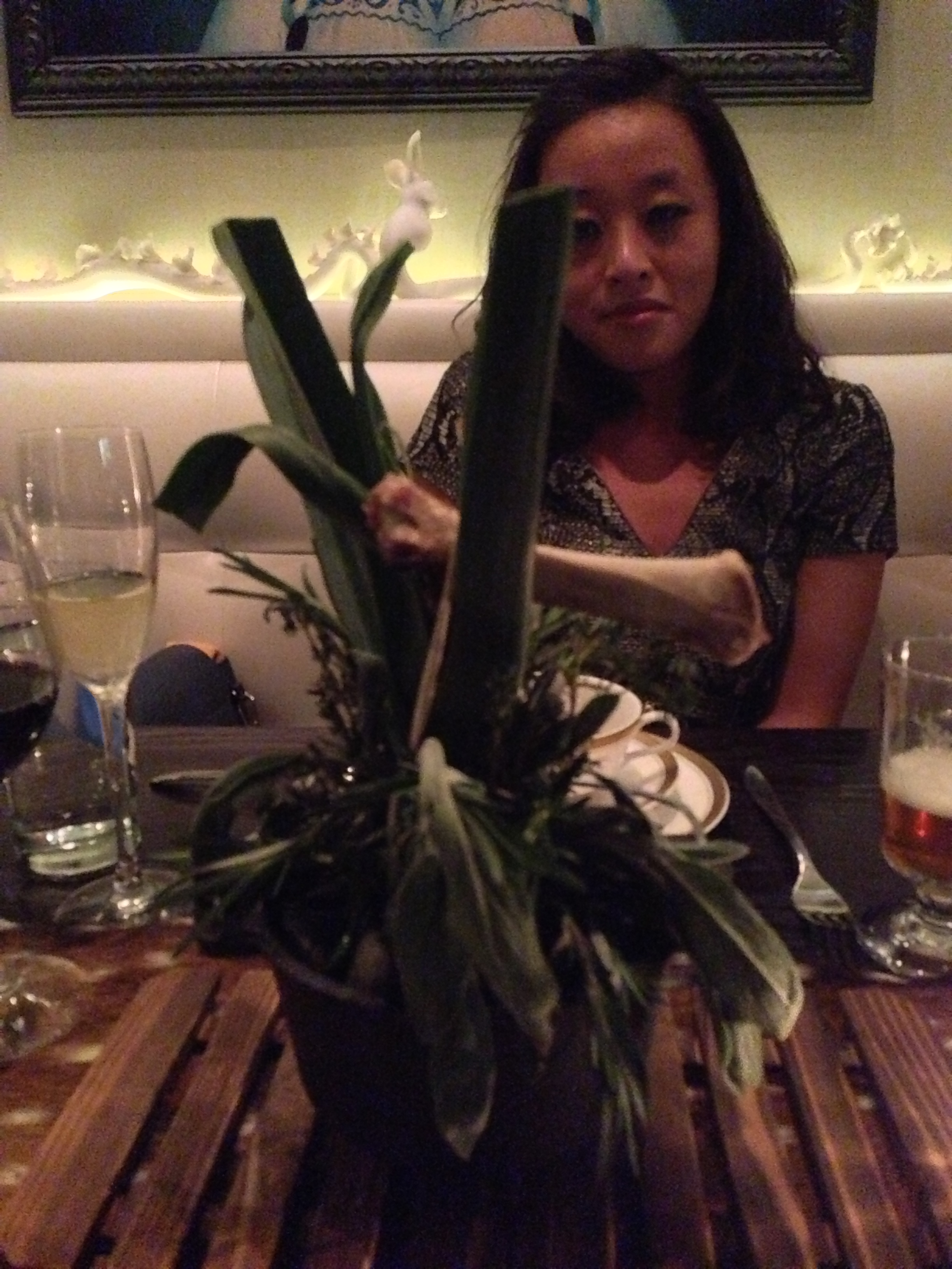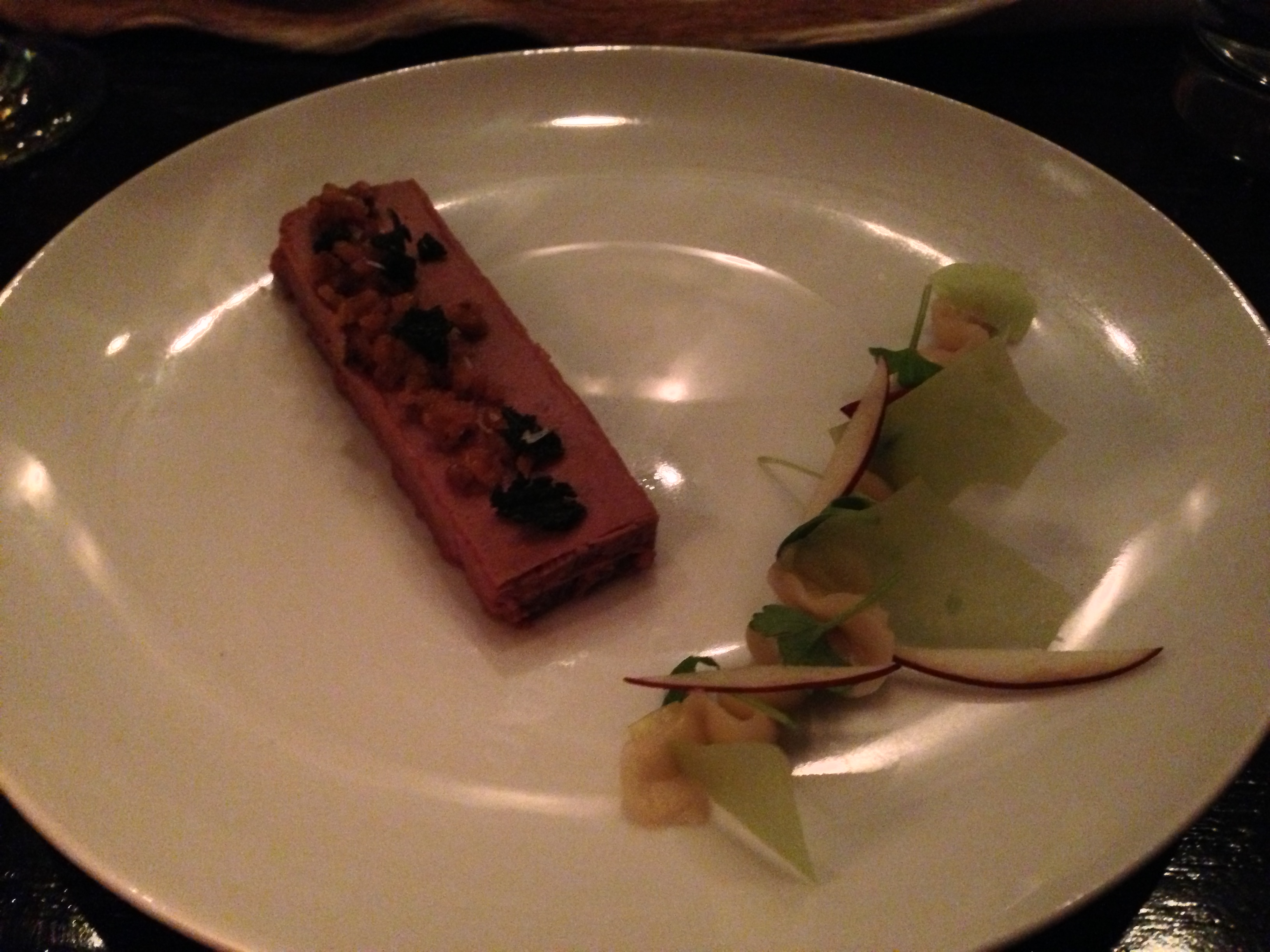 This was my second favorite course! The Parker House rolls aren’t perfect; the freshly-baked ones at Per Se are softer and more flavorful (though they’re also saltier). Still, they provided a nice source of carbs with which to eat the paté. It was like eating foie with brioche! The turkey paté was creamy, rich, and surprisingly soft. I took turns using my knife to spread the turkey paté over my bread and also to spread the pecan pie filling. The paté was great as a spread, but it had the problem of being too rich. The pecan pie filling, on the other hand, never got too rich; many people just kept on eating all of it. It was just so dang good! It tasted exactly like advertised—like the center of a really sweet pecan pie.