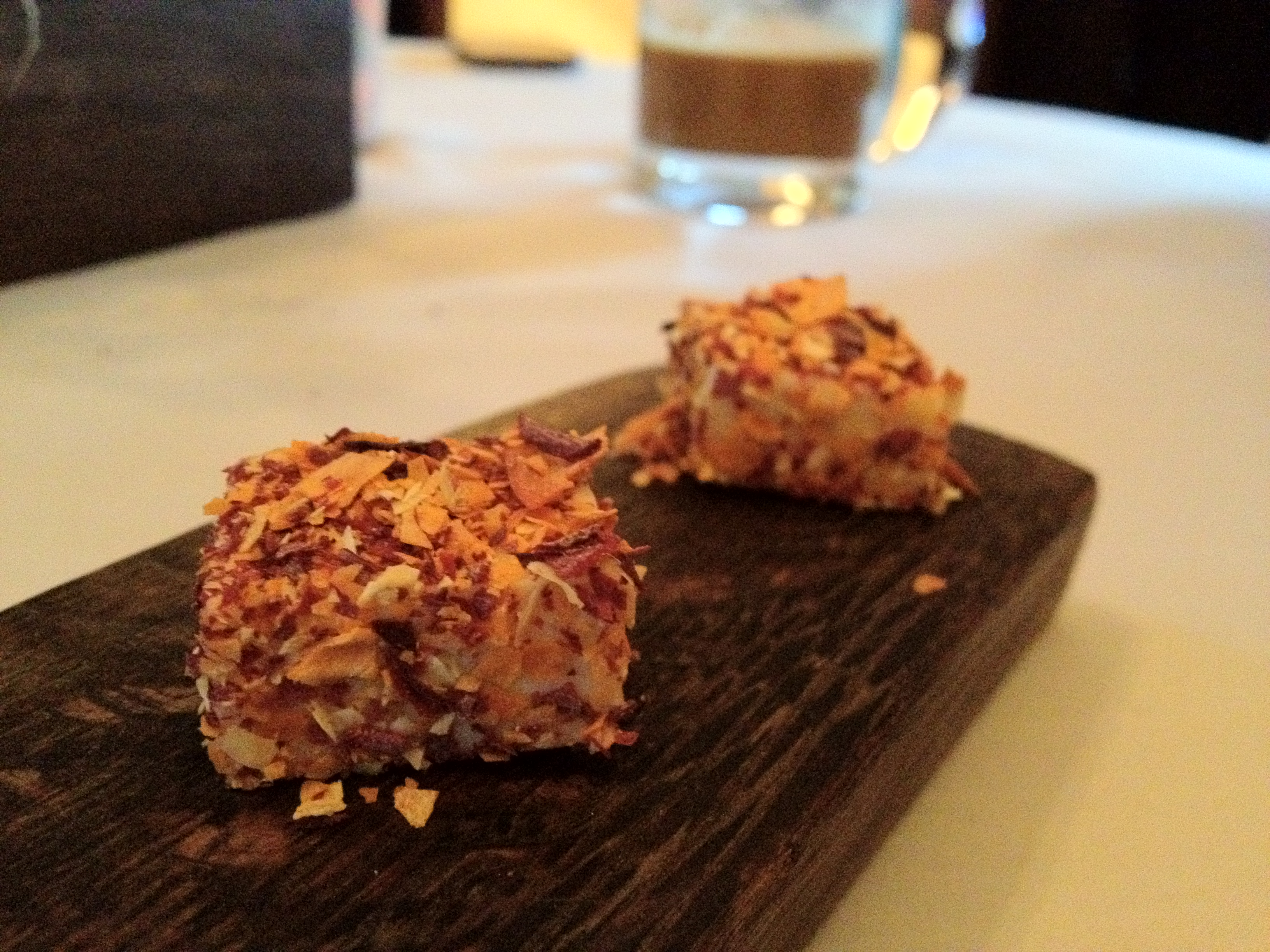 Monte: Someone at the table mentioned that this tasted like a nacho cheese dorito and I definitely had to agree that the aftertaste just reminded me of doritos! But the dish has “root vegetable” in its name so it must be healthier than a dorito…right?
