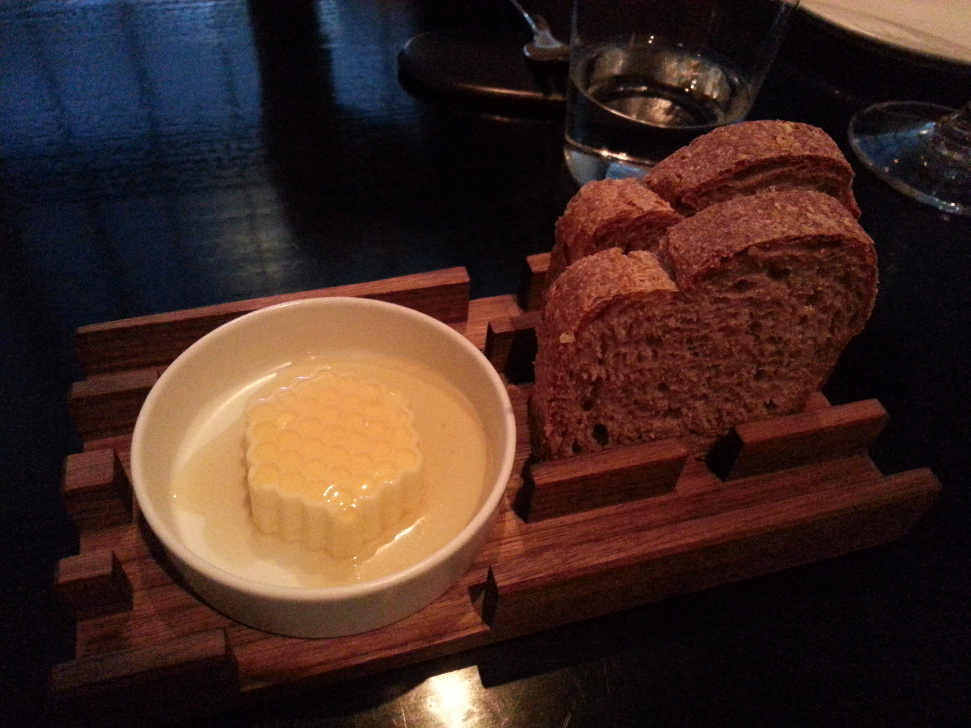 This bread is amazing. It has all the flavors of a wheaty earthy healthy bread, but such a wonderful warm fluffiness to the inside while maintaining a crispy baguette-ish exterior. The honey butter was an extra delight.