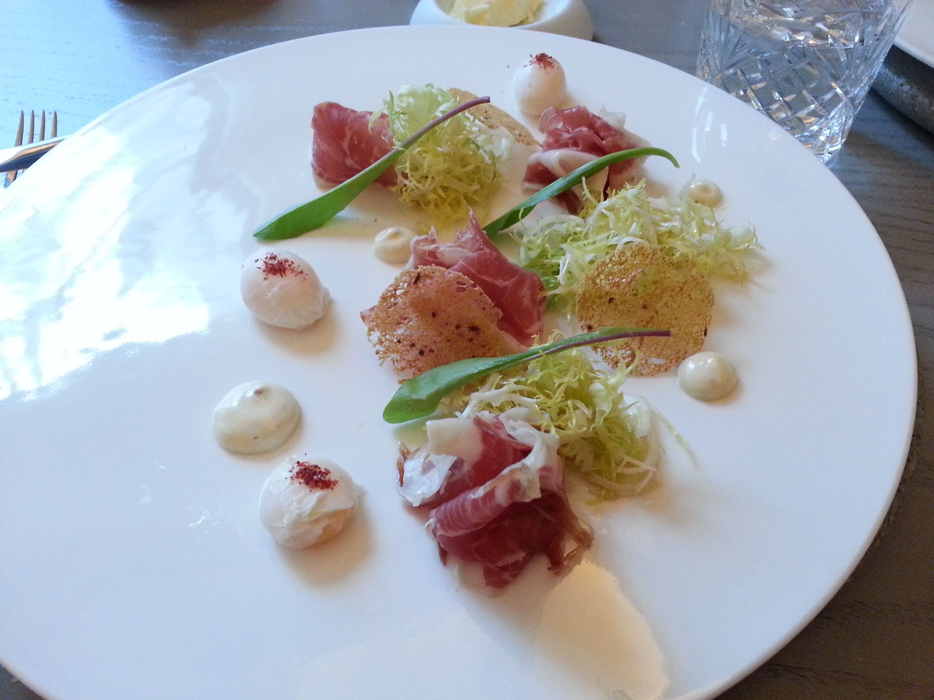 Tad: I didn’t eat everything in one bite. I preferred eating each element separately to test the quality of the individual ingredient. But the ham could have used something crisp or tart as contrast, and the frisee by itself was good but lacked richness.