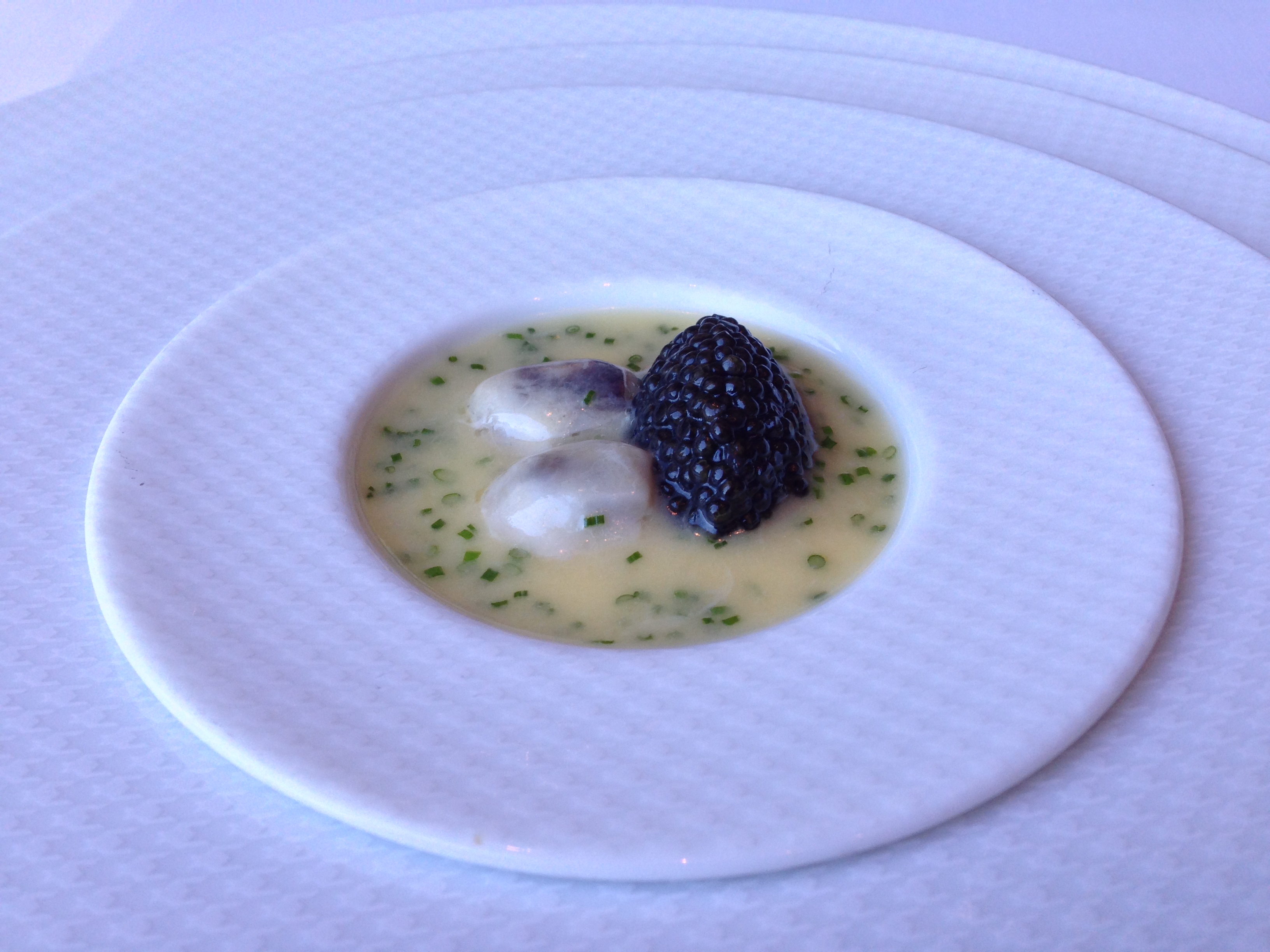 “Sabayon” of pearl tapioca with Island Creek oysters and Sterling white sturgeon caviar